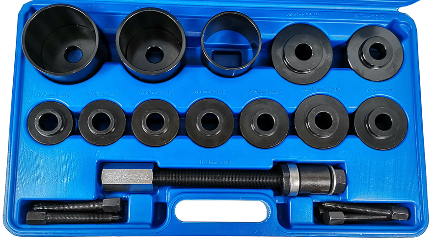 Данный набор предназначен для демонтажа подшипников вакуумным способом, что существенно снижает риски повреждения полуоси или подшипника, других комплектующих агрегата. Его также можно использовать для снятия и установки больших подшипников промышленного типа. Использование подобных наборов значительно облегчает ремонтные и диагностические работы с автомобилями, поскольку в составе есть большинство необходимых адаптеров.