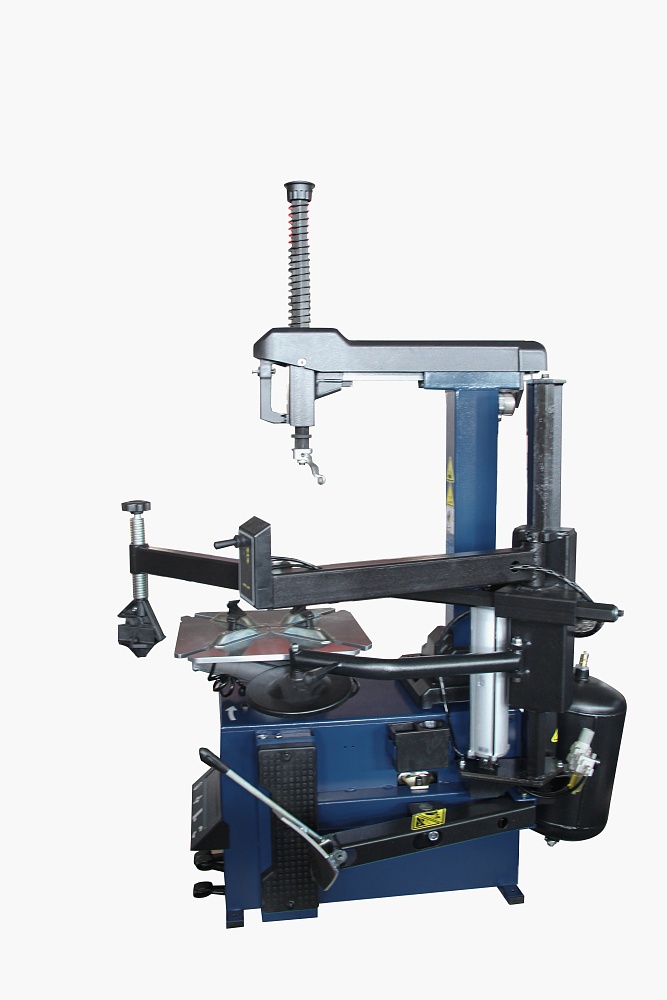 Полуавтоматический шиномонтажный станок с поворотной консолью для колес со стальными и алюминиевыми дисками.