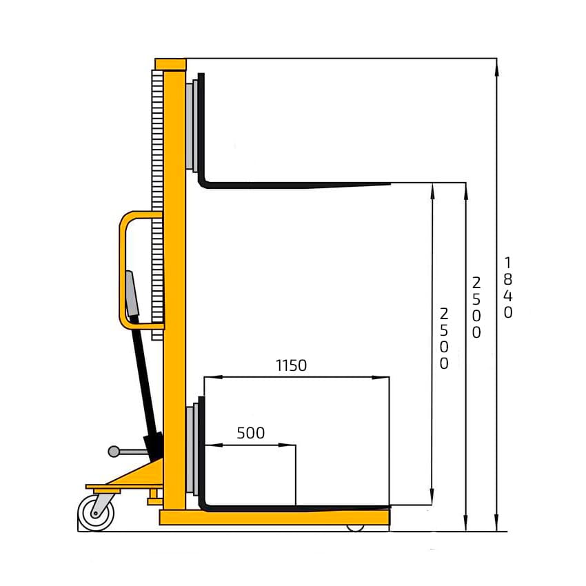 PLH 1000 25 RAKUDA, Ручной гидравлический штабелер, нагрузка 1000 кг., высота подъема 2500 мм, с раздвижными вилами (VILS) купить в Тюмени цена ✅ - Все для СТО