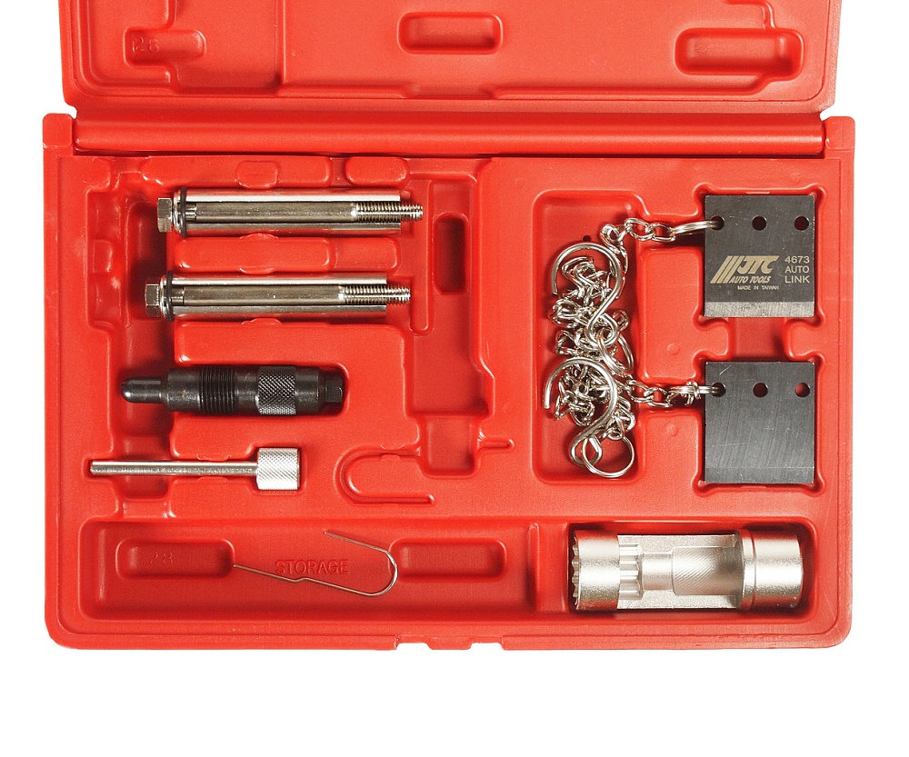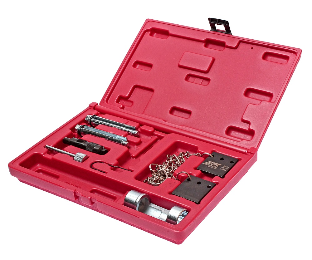 Набор инструмента для установки фаз ГРМ для дизельных двигателей Фольксваген (Volkswagen), Ауди (Audi) с мотором объемом 2,5л V6 1997 г.в.. В набор входит фиксатор коленвала 3242, который может использоваться на других моделях автомобилей VAG группы (например мотор BBJ).