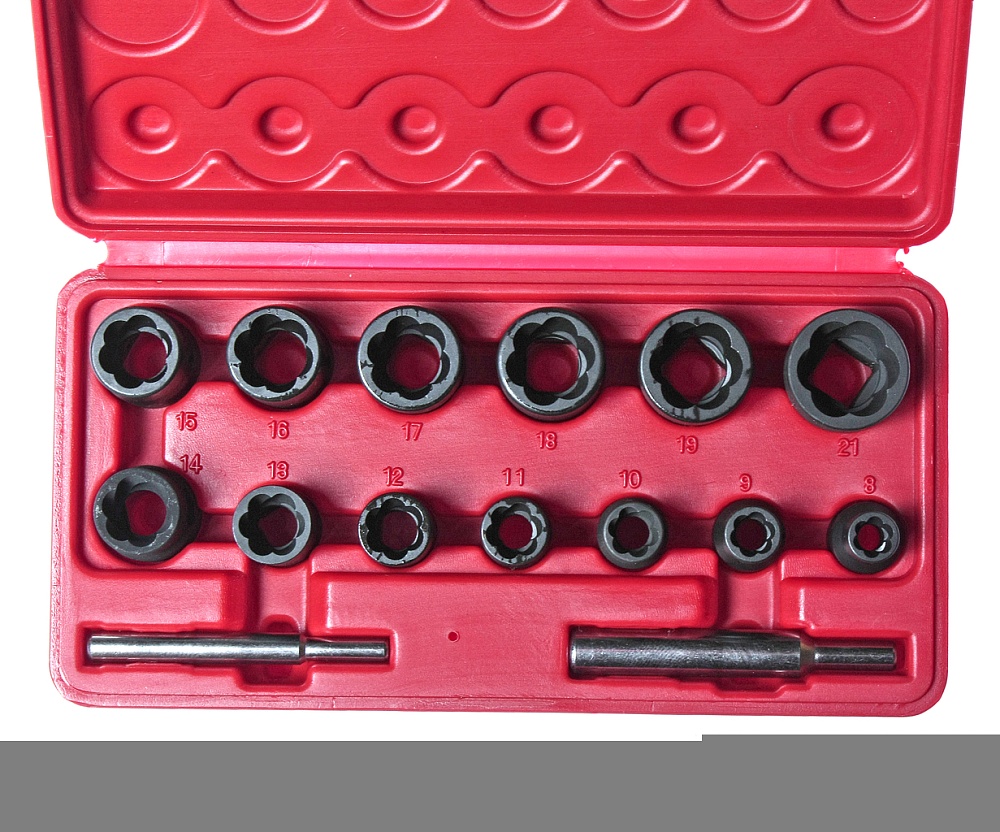 Набор головок для поврежденных болтов и гаек 8-21мм, 15 предметов (в кейсе)