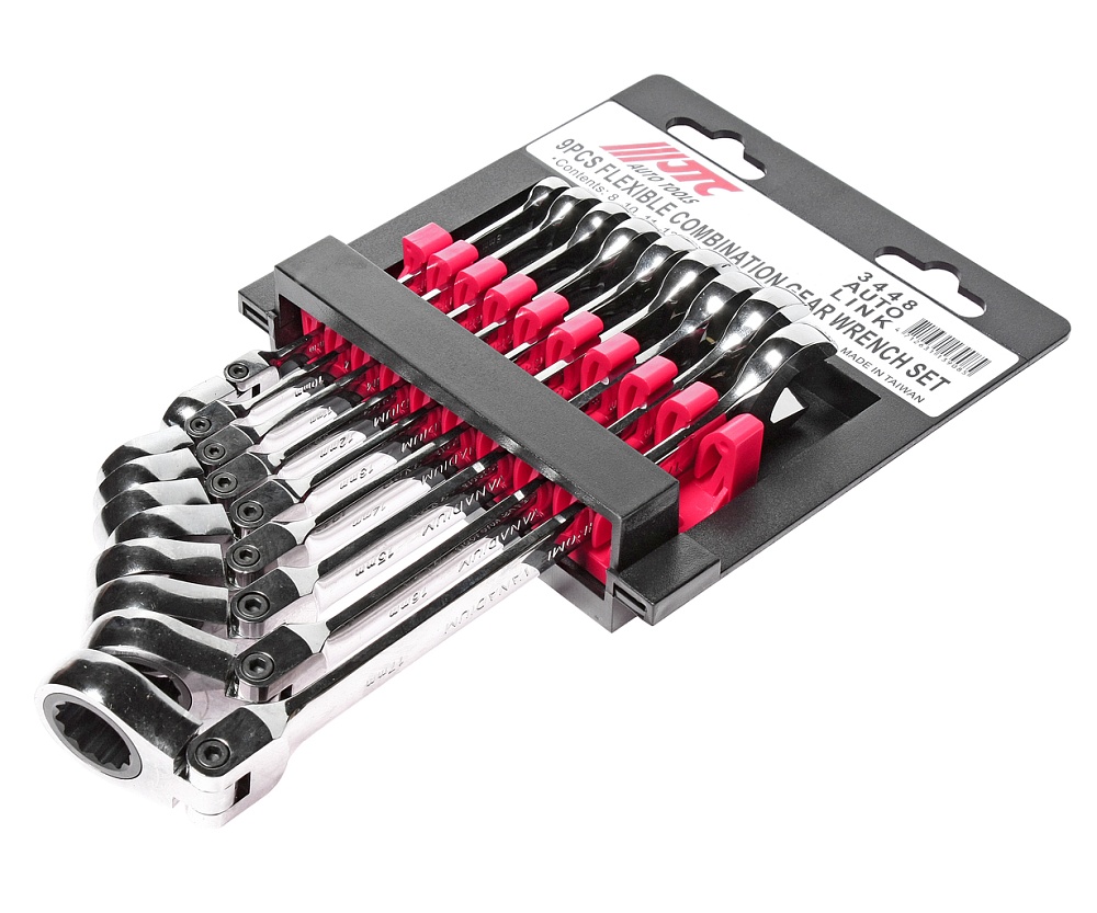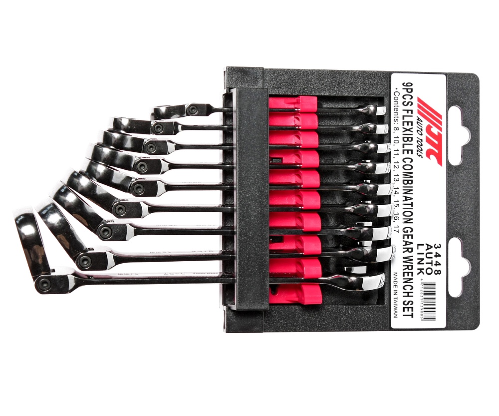 JTC-3448 Набор ключей комбинированных трещоточных с подвижной головкой 8-17мм (на холдере) 9 предметов JTC /1 купить в Тюмени цена ✅ - Все для СТО