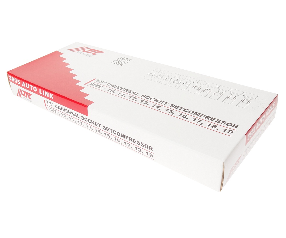 JTC-3605 Набор головок торцевых с карданом 6-гранных 3/8" 10-19мм (в кейсе) 10 предметов JTC /1