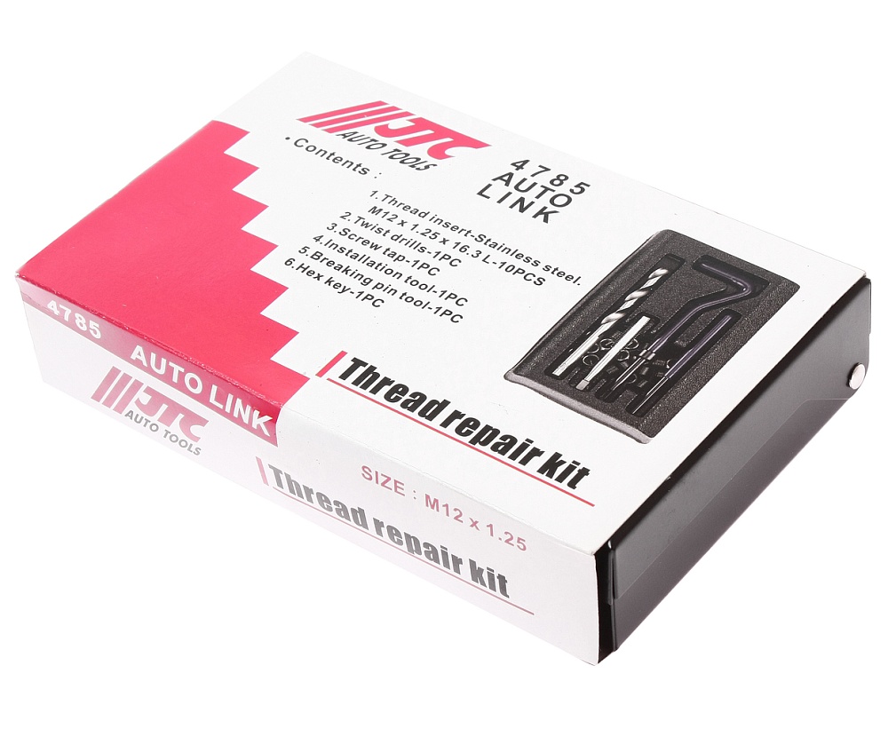 JTC-4785 Набор для восстановления резьбы (вставки M12x1.25, длина 16.3мм, 10шт) 14 предметов JTC /1