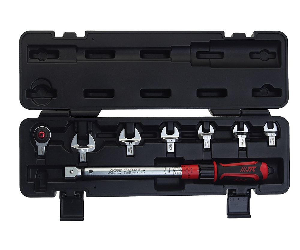 JTC-6833K Ключ динамометрический 9х12 с набором рожковых насадок 8 пр. (10-19мм), диапазон 20-110 н/м JTC купить в Тюмени цена ✅ - Все для СТО