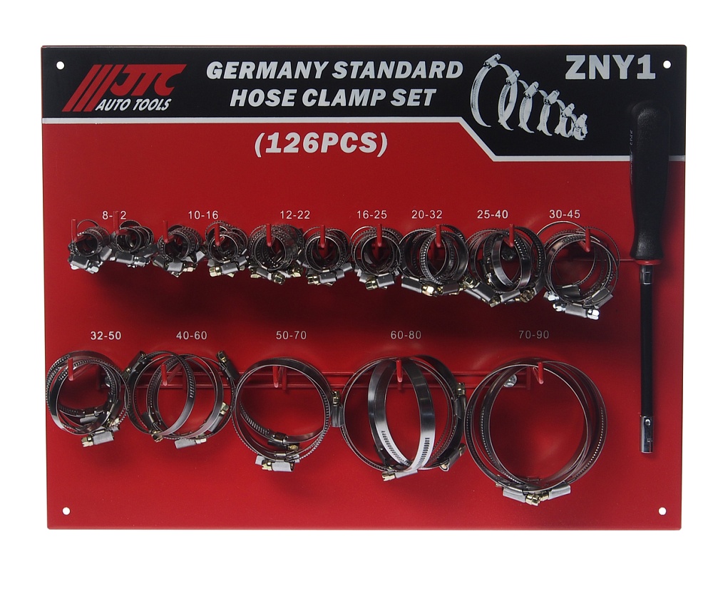 JTC-ZNY1 Набор хомутов червячных ZN12-ZN90 с гибким воротком 7мм (стенд) 126 предметов JTC /1 NEW купить в Тюмени цена ✅ - Все для СТО