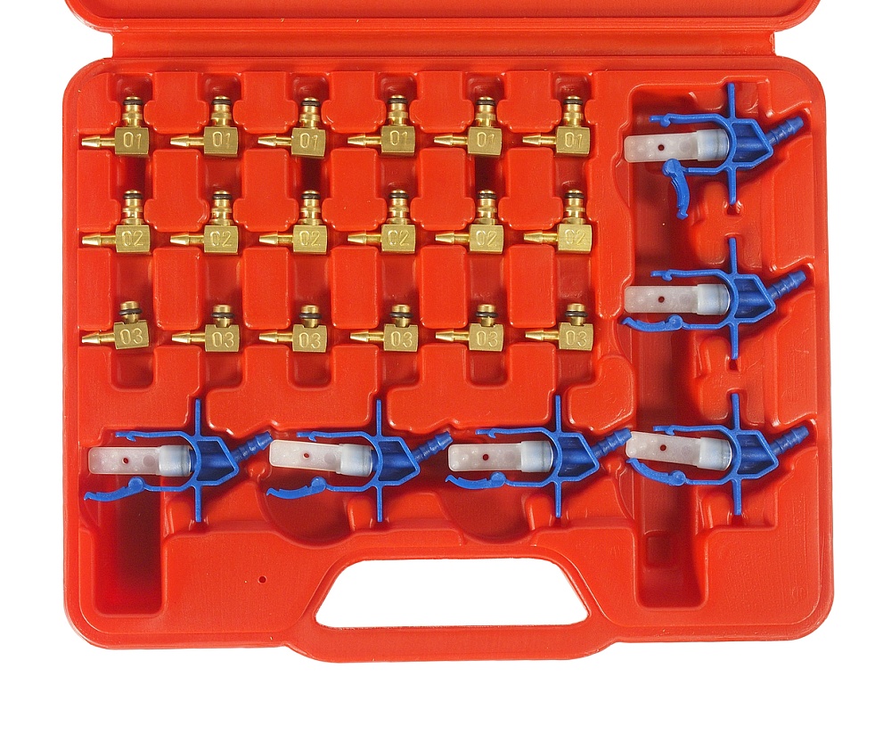В комплекте: 24 адаптера для форсунок Bosch-01, Siemens, Denso-03, Delphi  и др.