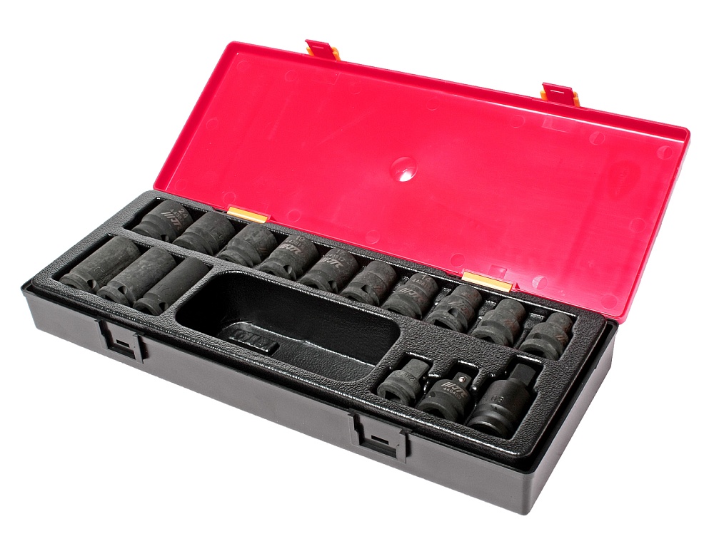 Набор головок торцевых 1/2" 6-ти гранных 10-24мм ударных в кейсе 16 предметов JTC