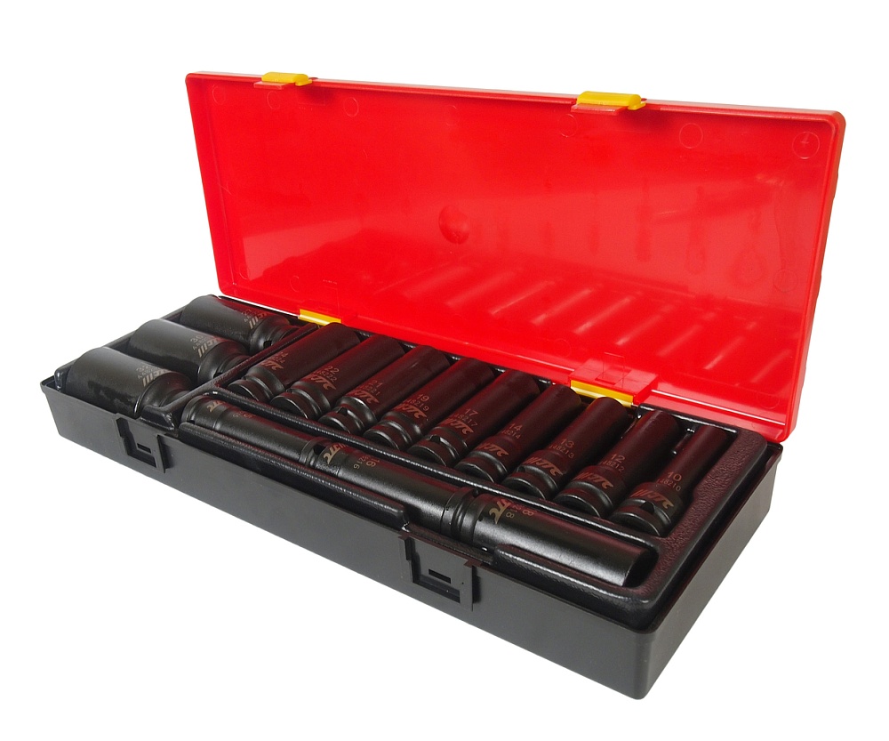 Артикулы JTC-448210-32: 6-гранные головки глубокие ударные: 10, 12, 13, 14, 15, 16, 17, 18, 19, 21, 22, 24, 27, 30, 32 мм. - 15 шт.