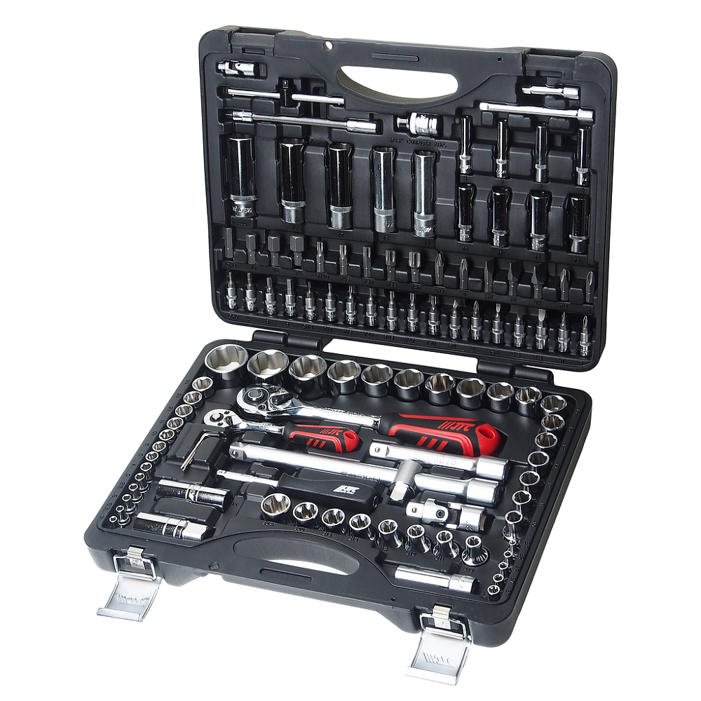 Набор головок торцевых и вставок 1/4",1/2" 6-гранных для поврежденных гаек 110 предметов в кейсе JTC купить в Тюмени цена ✅ - Все для СТО