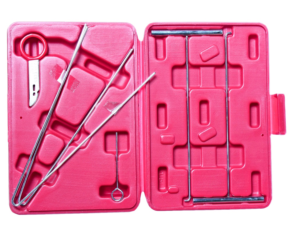 В набор входят приспособления для снятия замка зажигания, магнитолы, приборной панели.