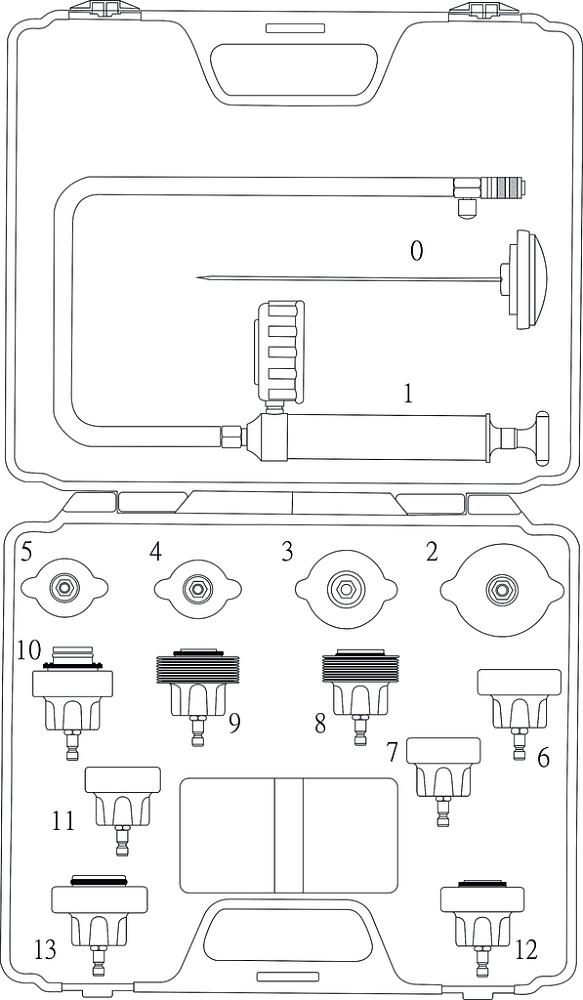 Набор предназначен для тестирования охладительной системы на предмет утечек.
