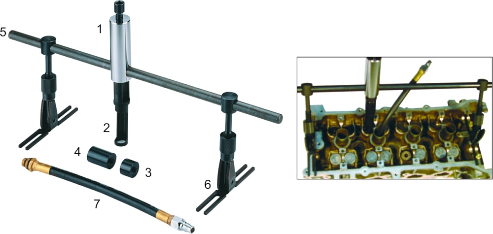 Представляет собой полный набор инструментов для установки и извлечения пружины клапана без необходимости снятия головки блока цилиндров двигателя.