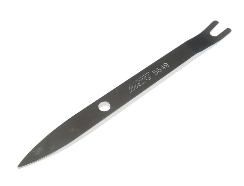 Одна сторона - острая и плоская, предназначена для работы в узком пространстве или с приборной панелью, вторая сторона - U-образной формы предназначена для снятия пластиковых зажимов, либо пластиковой отделки панели.