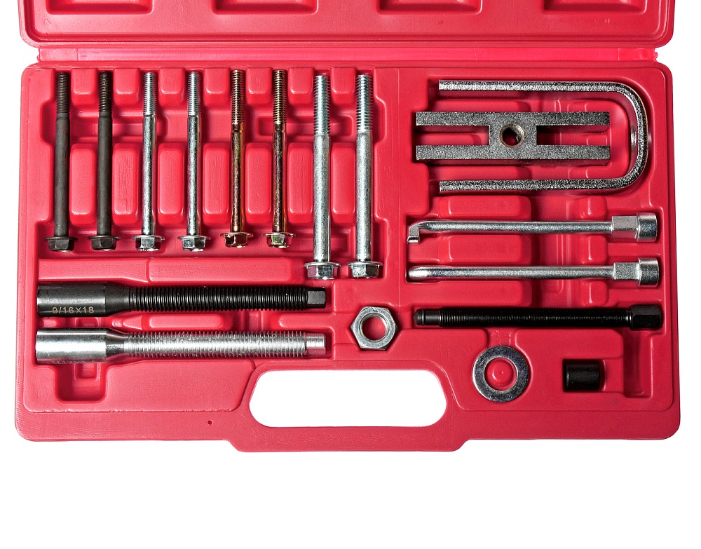 Комплект предназначен для демонтажа рулевых колес всех марок автомобилей (с телескопической рулевой колонкой и без).