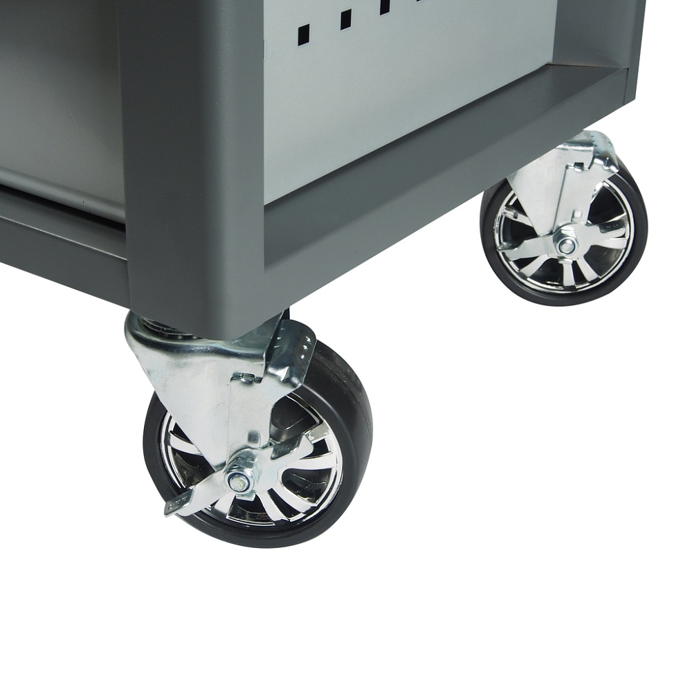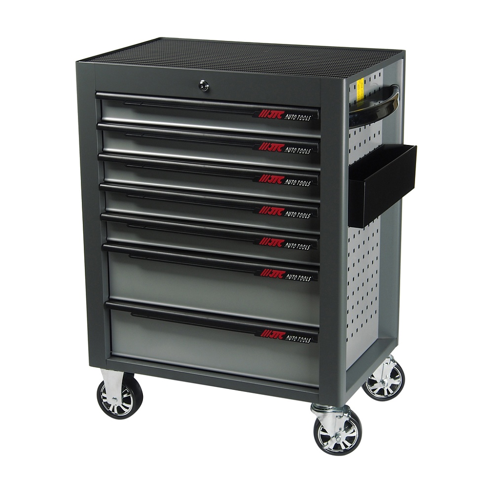 Тележка инструментальная (7 секций, серая, на колесах) JTC S1074 используется для хранения и систематизации крепежа, деталей и инструмента. Простая, но эффективная система хранения обеспечивает компактное расположение всех компонентов. Надежность конструкции обеспечивается прочным металлическим корпусом и наличием ребер жесткости. Подвижная транспортировочная рукоятка позволяет передвигать тележку в любом направлении. Для простоты перемещения есть пара поворотных колес с тормозной системой.