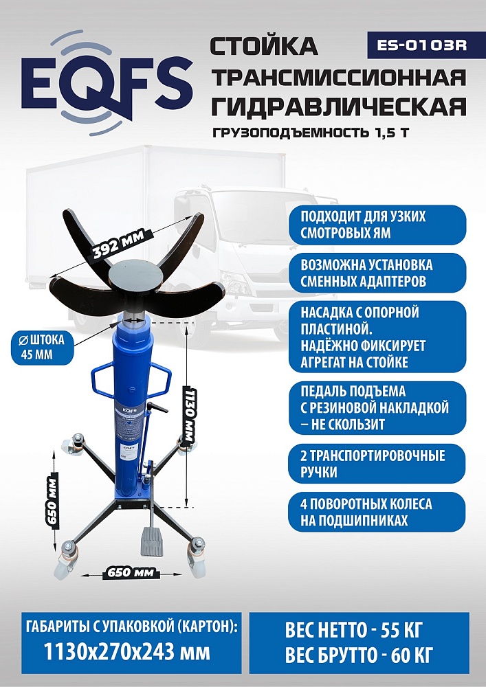 ES-0103R Стойка трансмиссионная гидравлическая 1,5т купить в Тюмени цена ✅ - Все для СТО
