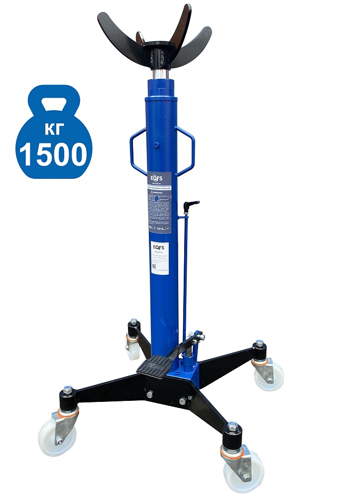 Профессиональная серия. Не текут и не ломаются. Для легкового, грузового и коммерческого транспорта. Цилиндр с клапанным блоком и ручным механизмом опускания. Удобная педаль накачки. Две ручки для перемещения. 4 прочных поворотных колеса. Клапан защиты от перегрузки. Ускоренный подъём. Грузоподъёмность - 1 500 кг. Высота подъёма 1130÷1915мм. Шток Ø45 мм.<br /><br />Стойка трансмиссионная гидравлическая профессиональная грузоподъемность 1500кг используется при монтаже и демонтаже узлов трансмиссий, КПП, тормозных суппортов и других агрегатов автомобиля, установленного на смотровой яме, эстакаде или подъемнике для ремонта или технического обслуживания. Трансмиссионная гидравлическая стойка является мобильным подъемным механизмом. С ее помощью можно поднять и переместить демонтированный агрегат автомобиля.<p></p><p></p>Особенности конструкции стойка трансмиссионная 1 500 кг:<br /><br /> ·         Трансмиссионная стойка оборудована насосом с плунжером для увеличения скорости подъёма.<br /> ·         Увеличенный диаметр штока – 45 мм.<br /> ·         Педаль подъема трансмиссионной стойки выполнена с резиновой накладкой.<br /> ·         Хромированный шток.<br /> ·         Ручной клапан для опускания стойки.<br /> ·         Четырехлучевая насадка с опорной пластиной позволяет надежно зафиксировать агрегат на стойке.<br /> ·         Устойчивое основание на 4-х прочных пластиковых колесах, не царапают плитку.<br /> ·         Аварийный клапан сброса давления при перегрузке.<br /> ·         Оборудована двумя металлическими ручками для удобства транспортировки по цеху.<br /> ·         Высокая чистота обработки внутренних поверхностей гидравлического цилиндра.<br /> ·         Трансмиссионная стойка оборудована отверстием с заглушкой для заливки масла.<br /> ·         Возможность применения сменных адаптеров.  <br /><br />