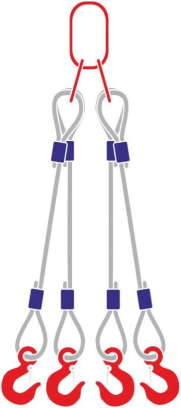 Строп канатный с 4 крюками 4СК применяется с подъемными кранами, талями, тельферами. Он представляет собой четыре ветви, соединенные между собой кольцом. Такая конструкция делает его распространенным при перемещении объектов со сложной конфигурацией. Кроме того, приспособление востребовано из-за минимального линейного расширения.