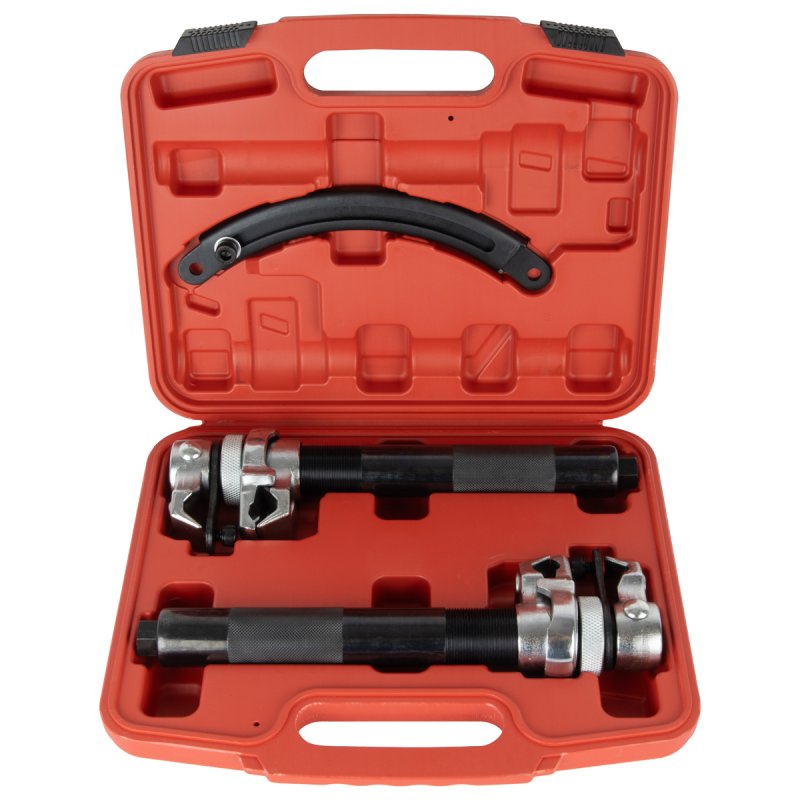 Стяжки предназначены для сжатия пружин при ремонтных работах на амортизаторных стойках автомобиля. Данная модель подходит для работы со стандартными стойками и стойками «Макферсон».