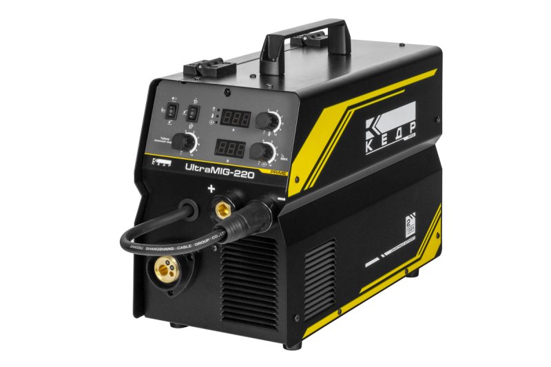 Полуавтомат КЕДР UltraMIG-220 (220В, 30-220А) - предназначен для сварки на малых и средних предприятиях, частных мастерских, а также для использования в домашних хозяйствах. Аппарат выполнен на современных IGBT-модулях, надежно защищенных силовой частью, а высокопрочный металлический корпус позволяет использовать его в тяжелых промышленных условиях. Цифровая панель с дисплеями значительно упрощает работу с данным аппаратом и позволяет снизить классификацию сварщика без потери качества сварки.