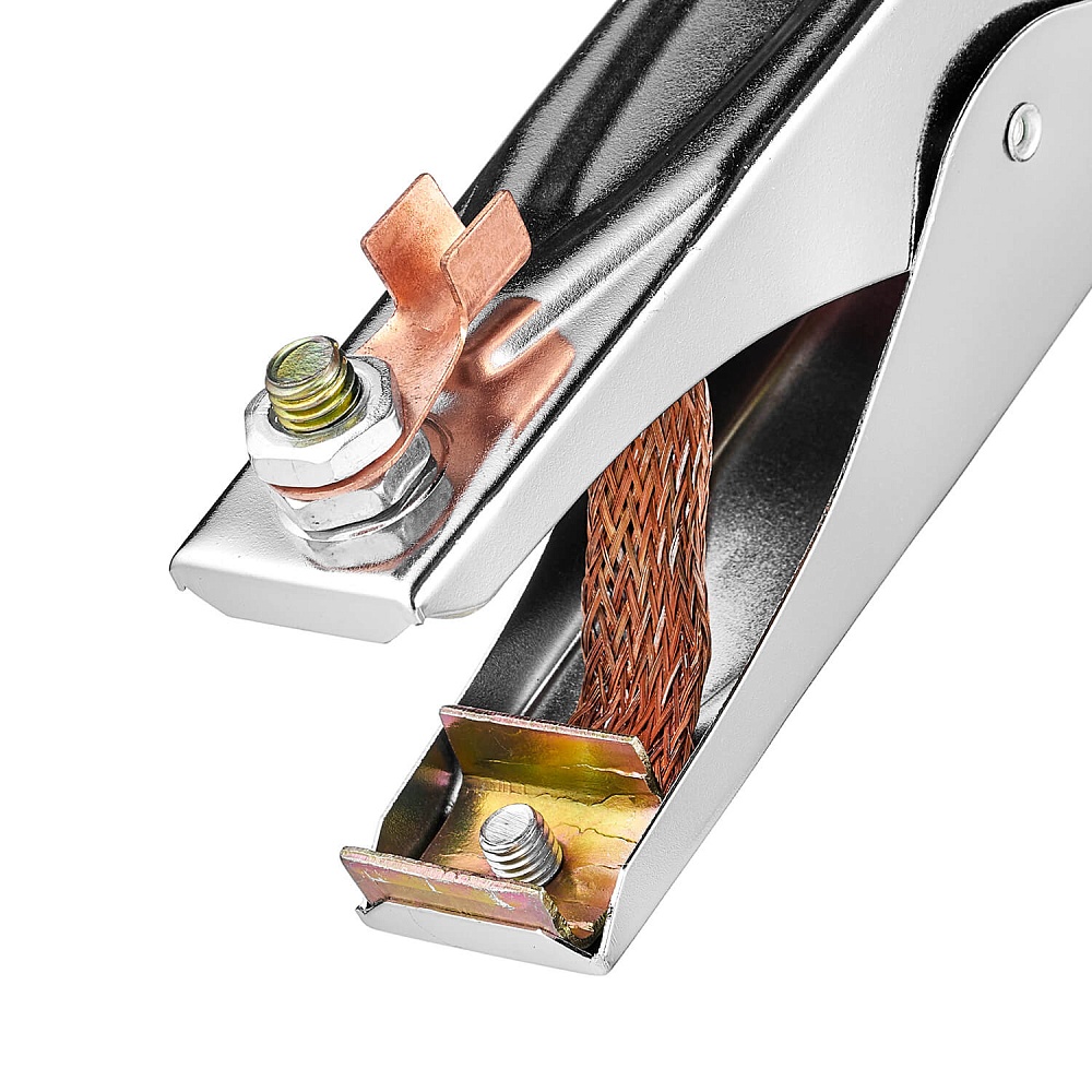 Клемма изготовлена из углеродистой стали. Наличие изолированных ручек гарантирует безопасную эксплуатацию.