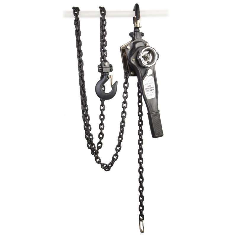 Рычажная таль предназначена для подъема, подтягивания и опускания грузов весом до 750 кг. Длина цепи составляет 3 метра.