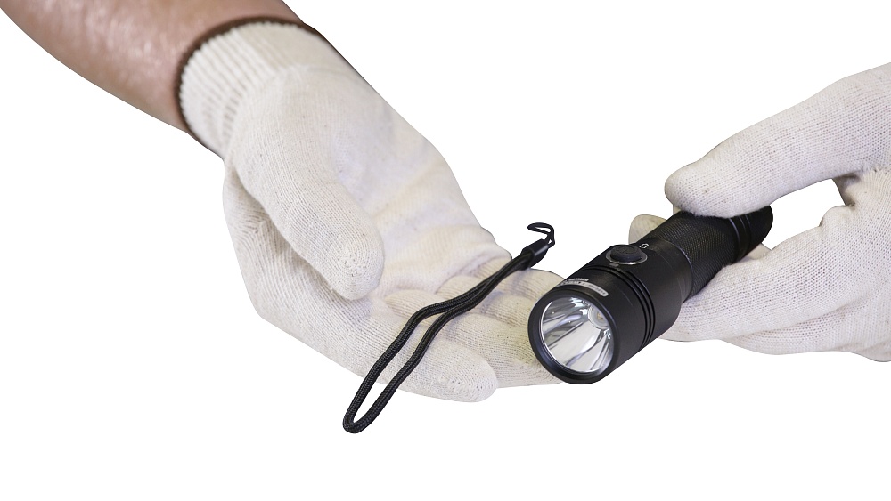 Фонарь питается от аккумуляторной батареи напряжением 3,7 В и током 2000 mAh, обеспечивающей время непрерывной работы до 6 часов. В комплекте с фонарем поставляется кабель для зарядки от USB порта компьютера, ноутбука или внешнего аккумулятора для телефона (Power Bank). Корпус фонаря изготовлен из ударопрочного алюминия и имеет степень защиты от пыли и влаги  IP65. Ремешок, входящий в комплект, надежно фиксирует фонарь на запястье руки.