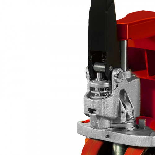 Рукоять тележки имеет эргономичное покрытие, благодаря которому предотвращается скольжение рук и повышается комфорт работы оператора. Полиуретановые колеса и ролики отличаются высокой износостойкостью и не оставляют следов на поверхности пола.