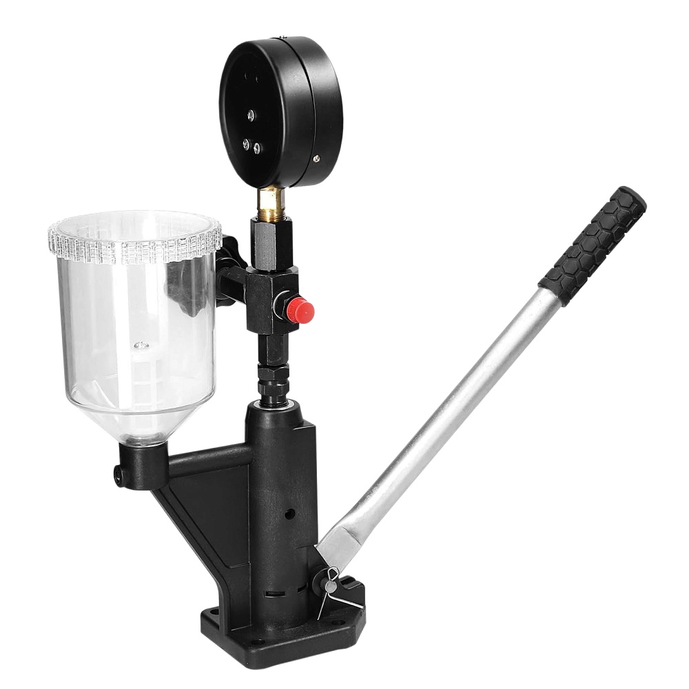 В бак заливается топливо, к прибору крепится форсунка, ручным насосом создается давление и визуально контролируется факел распыла и по манометру давление открытия форсунки.