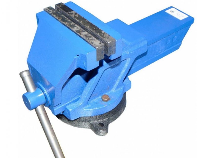 Тиски слесарные поворотные 0°-360° с наковальней. Материал: чугун СЧ20 (серый чугун) ГОСТ 1412-85. Губки сменные 160 мм. Ход 155 мм. Зажим 5000 кгс. Вес: 27 кг. Габариты:460x230x210 мм. Сделано в Белоруссии.
