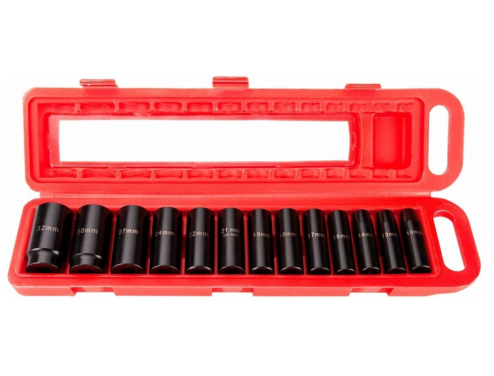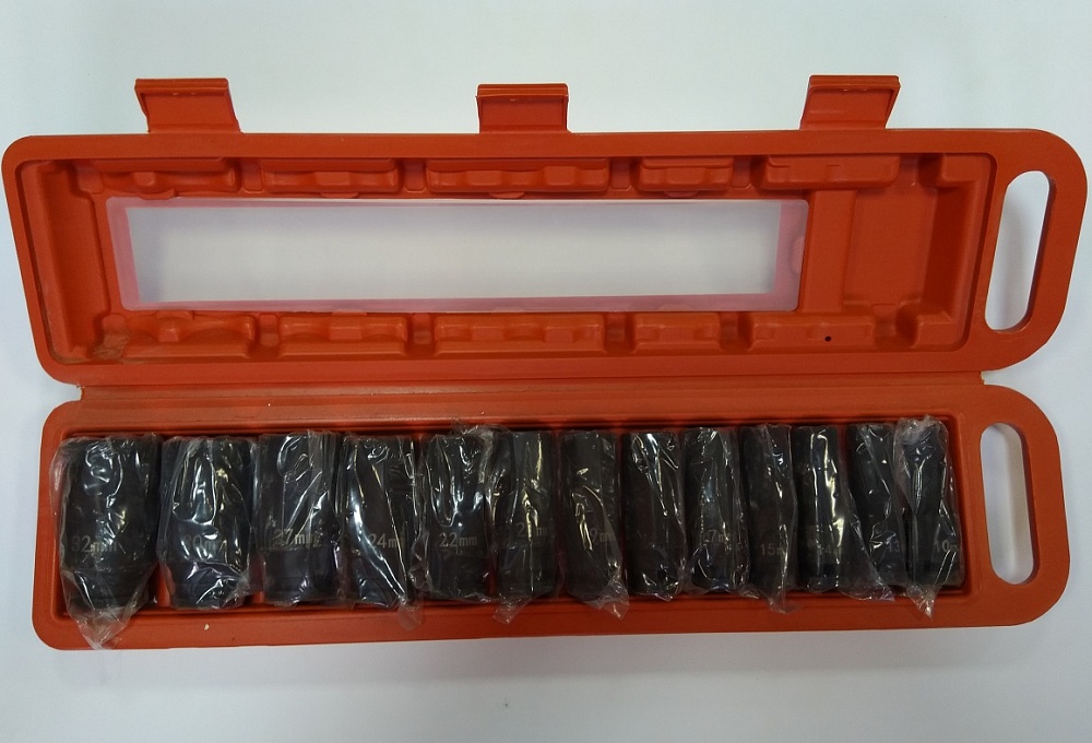 Набор удлиненных ударных торцевых головок для гайковерта 1/2” – 10, 13, 14, 17, 19, 21, 22, 23, 24, 27, 30, 32мм.