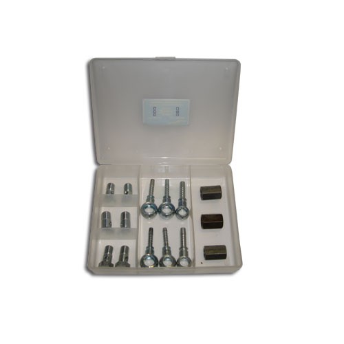 Комплект адаптеров предназначен для обслуживания топливных систем впрыска. Преимущественно для дизельных большегрузных а/м. В комплект входит банжо-болты, банжо-соединения, соединительные гайки, диаметром 16, 18, 20 мм.В комплекте 15 адаптеров.