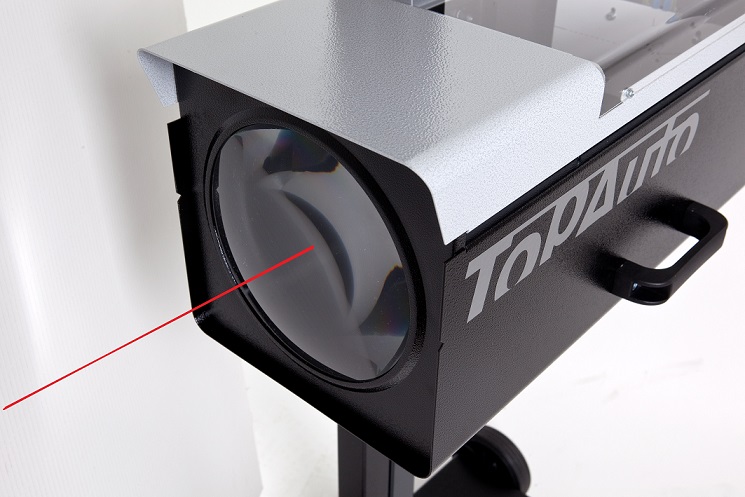 Прибор проверки и регулировки света фар оптико-механический, лазерный наводчик, электронный люксметр, зеркальный визир, регулируемый измерительный щит, основание на колесиках, неподвижная стойка со скользящими нейлоновыми колодками. Работает с галогеновыми, ксеноновыми и LED фарами
