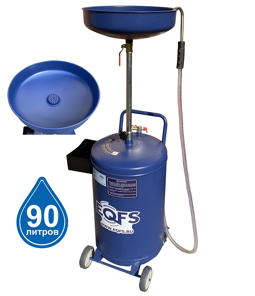 Маслосборник помещает 90 литров отработанного масла и антифриза. Бак 80л и чаша (воронка) 10л.