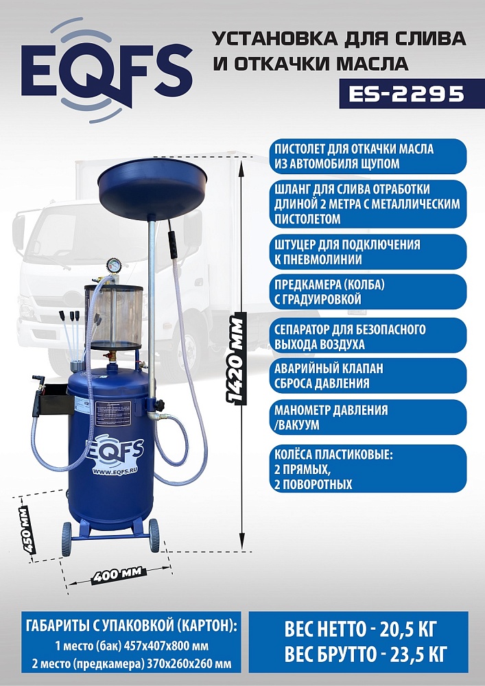 ES-2295 Установка для слива отработанного масла купить в Тюмени цена ✅ - Все для СТО