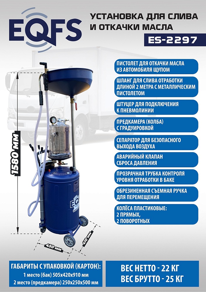 ES-2297 Установка для слива отработанного масла купить в Тюмени цена ✅ - Все для СТО