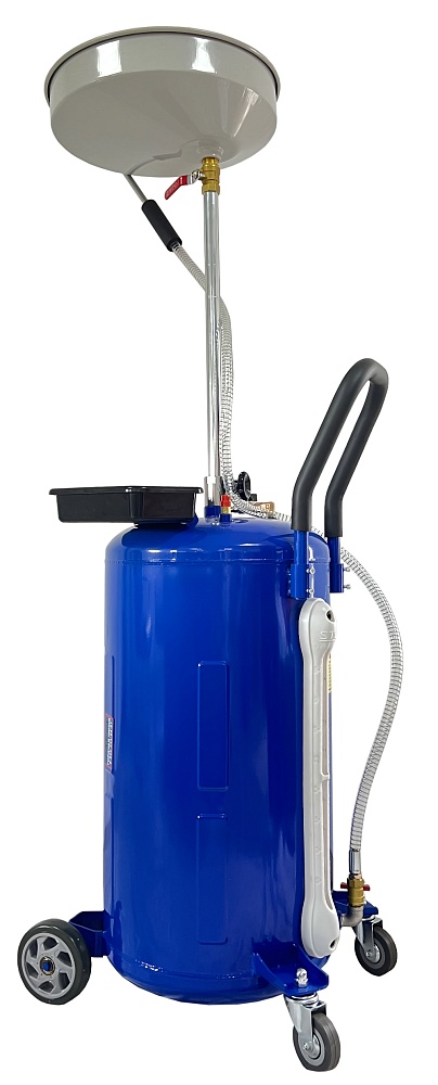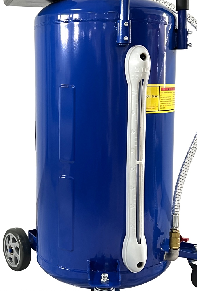 Установка для слива и откачки щупами масла и антифриза из ДВС, КПП и мостов всех авто. В комплекте: Колба + сливная чаша с сеткой для улавливания мелких деталей + щупы гибкие 6 шт. + лоток для сливной пробки + стрелочная индикация уровня разрежения + визуальный контроль уровня отработки + металлические пистолеты для откачки масла + быстросъёмный штуцер для пневмолинии + сепаратор для выхода воздуха.  Вмещает 100 л. = Бак 80л + колба 10 л. + сливная воронка 10л.