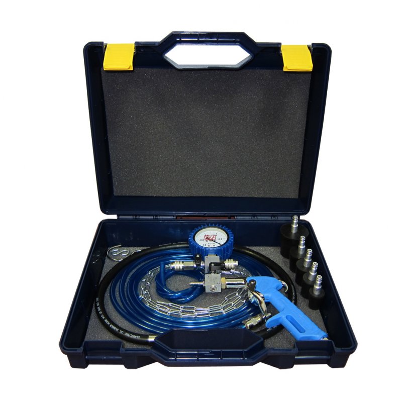 Приспособление SMC-112/2 предназначено для экспресс заправки антифриза в системе охлаждения автомобиля.Представляет собой соединённый с вакуумметром гибкий трубопровод для подключения к системе  охлаждения автомобиля с помощью применения универсальных резиновых пробок, входящих в комплект. SMC-112/2 имеет съёмный подвесной крюк и цепь с S-крюком для удобного крепления в моторном отсеке автомобиля на нужной высоте, резиновый защитный чехол. Поставляется в кейсе.Для работы требуется компрессор.