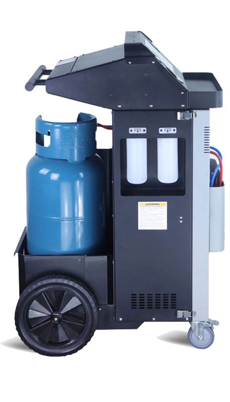 для обслуживания кондиционеров с фреоном R-134a. Функции: откачивание и очистка хладагента из системы, отделение и последующий сброс масла, вакуумирование системы, автоматическая заправка фреона и масла.
