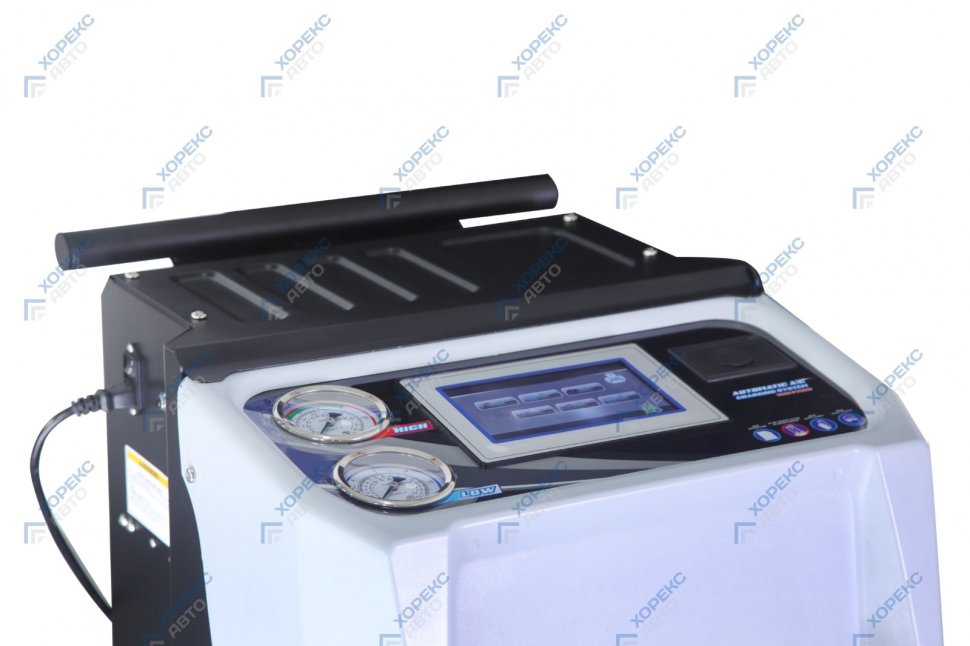 Автоматическая установка для обслуживания автомобильных систем кондиционирования с фреоном R-134a. Функции: откачивание и очистка хладагента из системы, отделение и последующий сброс масла, вакуумирование системы, автоматическая заправка фреона и масла.