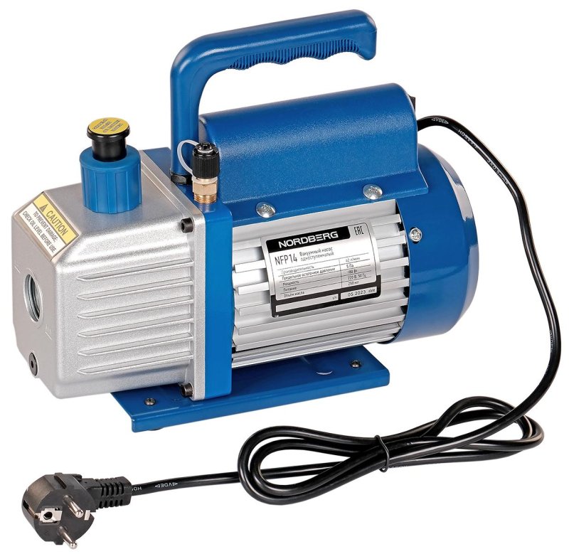 Пластинчато-роторный одноступенчатый вакуумный насос NORDBERG NFP14 – насос с производительностью 42 л/мин для обслуживания автомобильных систем кондиционирования воздуха, а также различных климатических и холодильных систем.