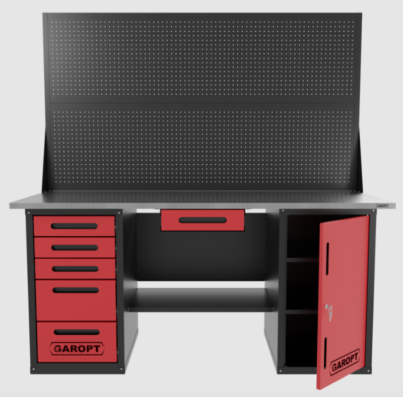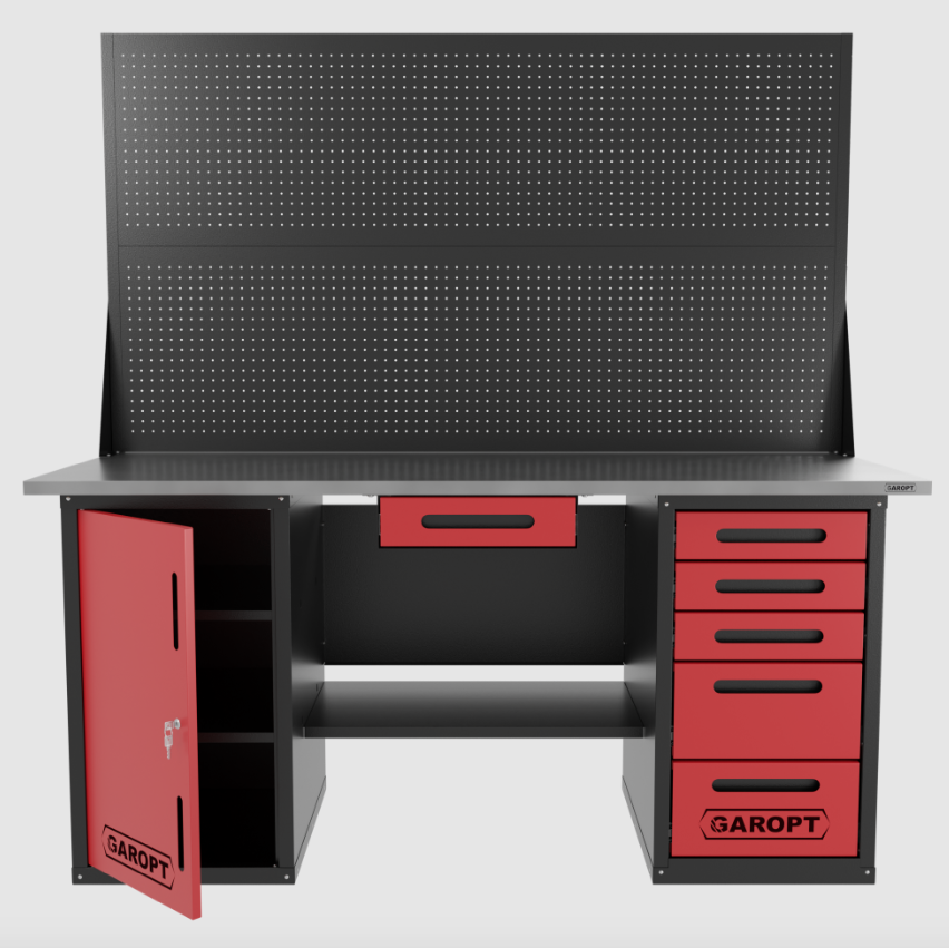 Верстак двухтумбовый дверь/5 ящиков с двумя экранами и ящиком, красный 1800*700 Garopt, GT1800DY1Y5PP2.red купить в Тюмени цена ✅ - Все для СТО