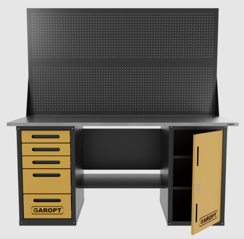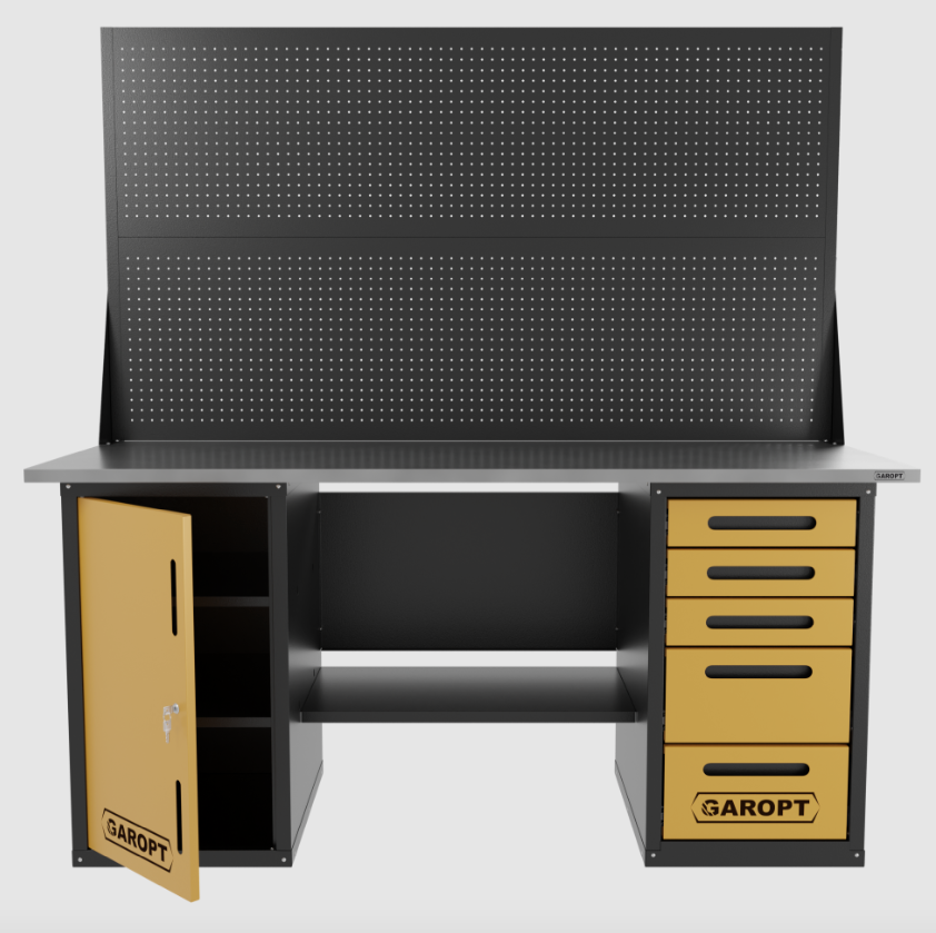 Верстак двухтумбовый дверь/5 ящиков с двумя экранами, желтый 1800*700 Garopt, GT1800DY5PP2.yell купить в Тюмени цена ✅ - Все для СТО
