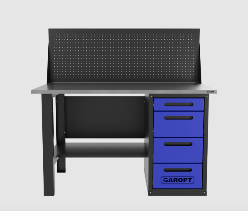 Верстак однотумбовый 4 ящика с экраном синий 1400*700 Garopt, GT1400STY4PP.blue купить в Тюмени цена ✅ - Все для СТО