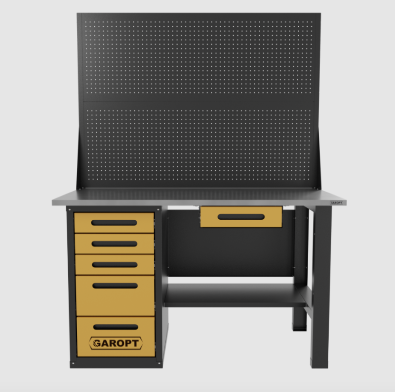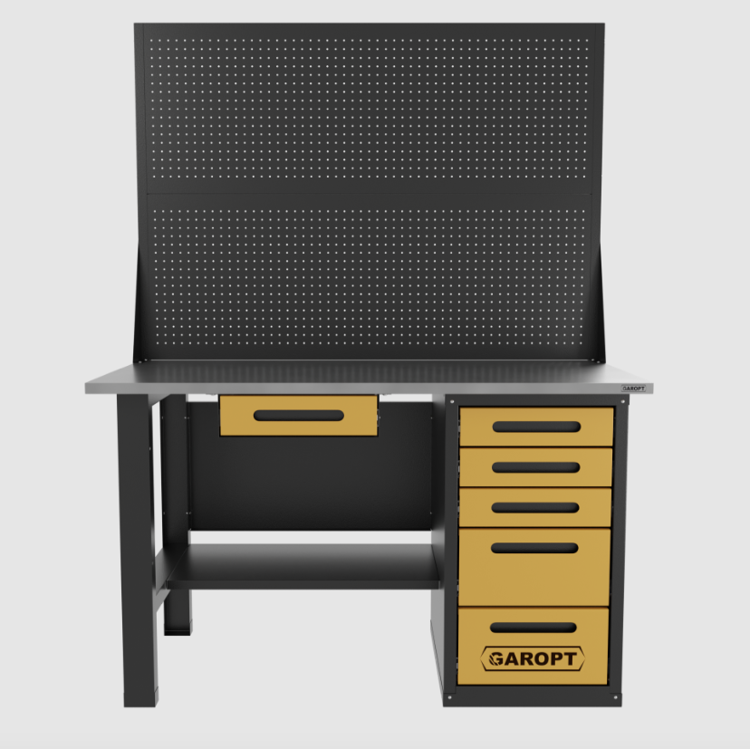 Верстак однотумбовый 5 ящиков с двумя экранами и ящиком, желтый 1400*700 Garopt, GT1400STY1Y5PP2.yell купить в Тюмени цена ✅ - Все для СТО