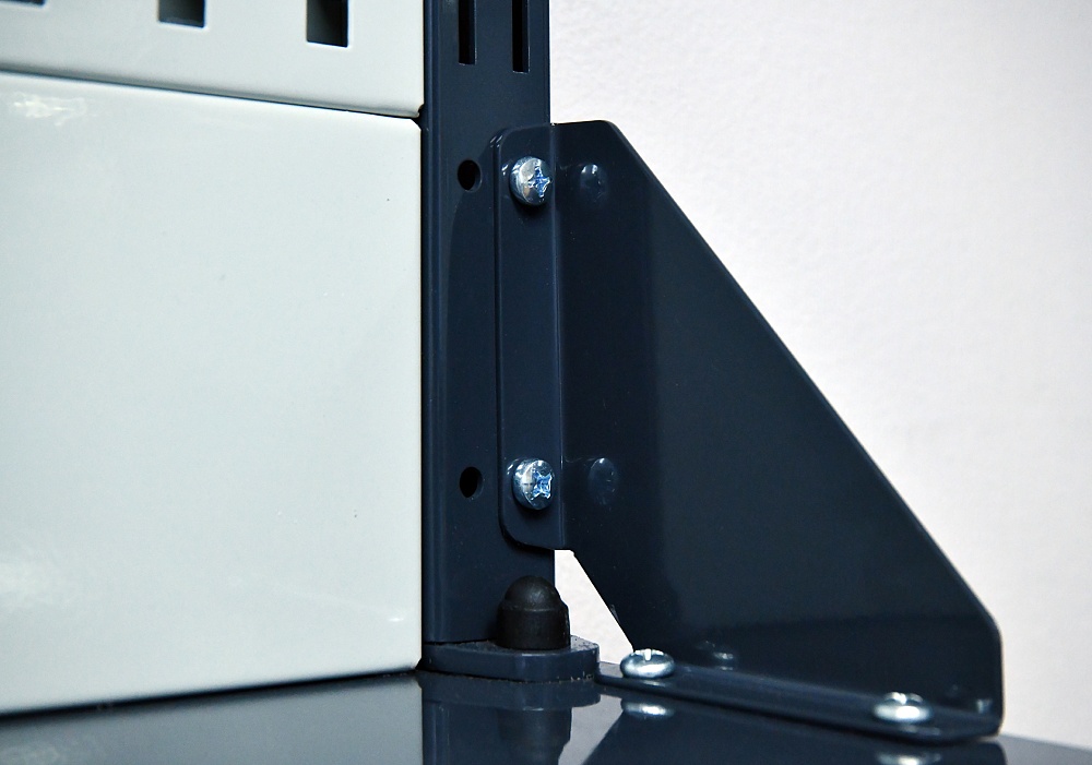 Цвет и текстура покрытия рамы верстака, накладки столешницы, корпусов модулей RAL 7024, гладкая, глянцевая. Цвет и текстура покрытия лицевых панелей ящиков и боковых перфопанелей RAL 7047, гладкая, глянцевая. Цвет и текстура покрытия накладок ручек ящиков RAL 9006, гладкая, глянцевая.