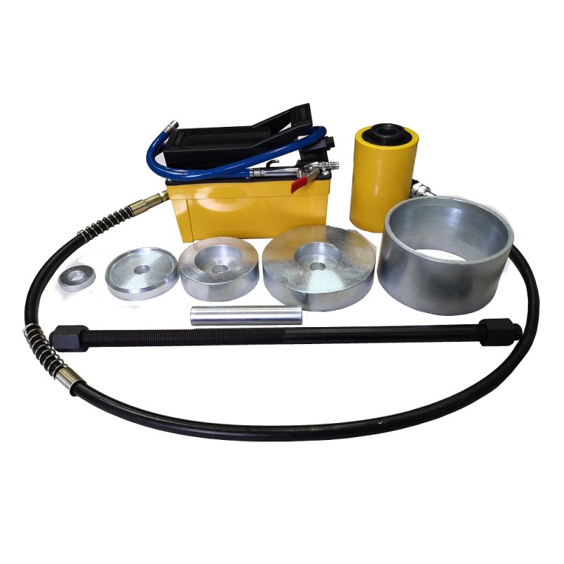 Использование данного оборудования позволяет, как выпрессовывать сайлентблоки вышедшие из строя, так и запрессовывать новые. Так же данный комплект можно использовать для выполнения любых других подобных операций, широко распространённых при ремонте, как грузовых, так и легковых автомобилей.